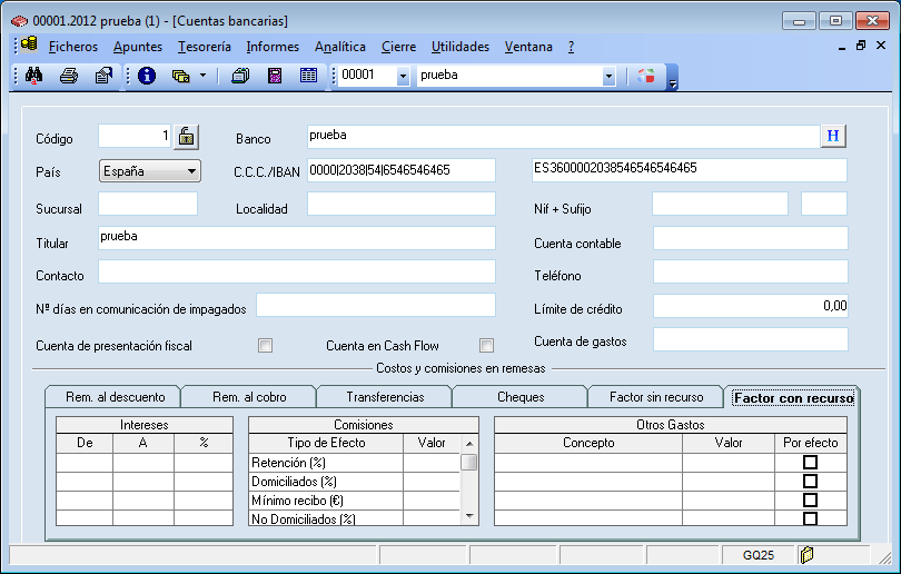 la empresa seleccionada. La pantalla de trabajo que aparece al seleccionar la opción en el menú, dispone en la parte superior de una zona fija con los datos principales: Número de cuenta y título.