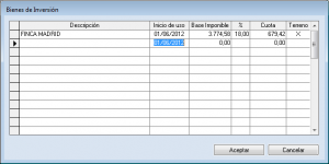 Precio pagado por el bien y fecha de adquisición (esta fecha es la que toma el programa como inicio de la amortización si no se especifica lo contrario en el campo correspondiente).