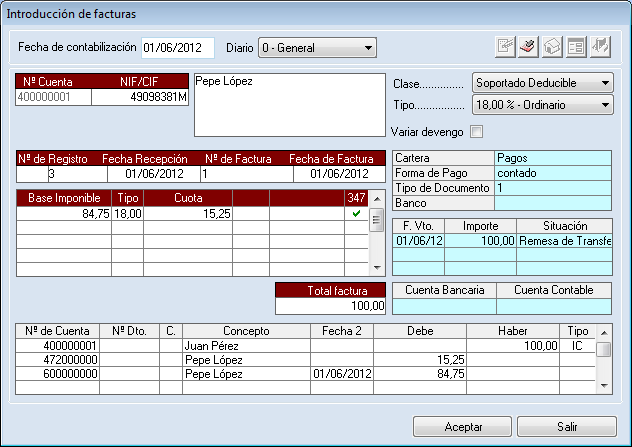 · Introducción de facturas