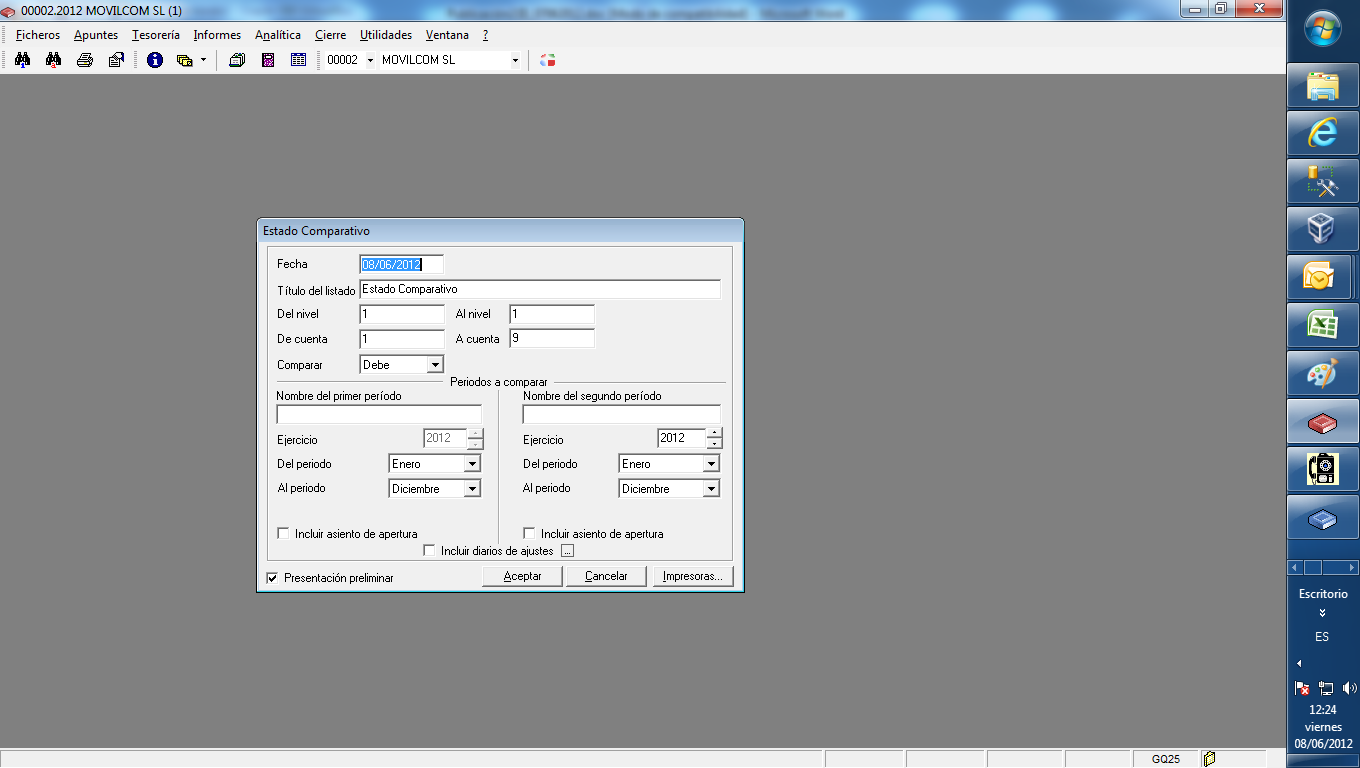 dispone de la posibilidad de seleccionar esta información referida a cualquier diario auxiliar o a un ejercicio anterior por medio de los “Desplegables” de la parte derecha de esta carpeta: