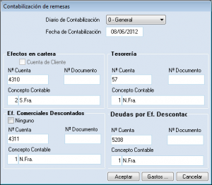 En remesas se incluyen las mismas preferencias genéricas para los apuntes que se realizan en la contabilización de remesas.